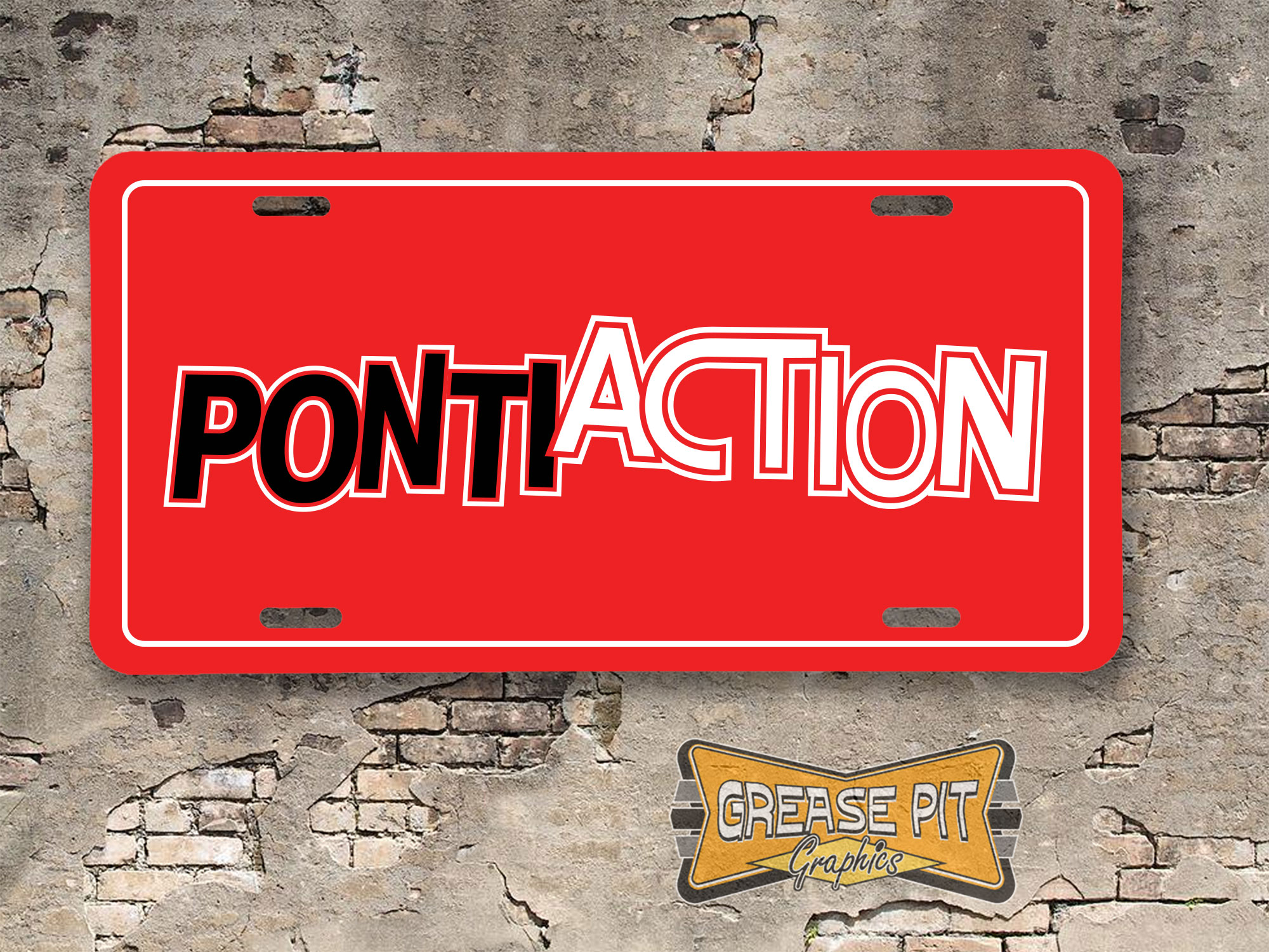 Hang one on your Pontiac GTO, LeMans, Tempest, T-37, Grand Am, Can Am, Catalina, Bonneville, Ventura , Grand Prix, 2+2, Firebird, Formula, Trans Am or on the wall in your garage, basement or man cave. A Grease Pit Graphics custom Booster License Plate makes a great gift for the Hot Rodder & Muscle Car guy or gal in your life.