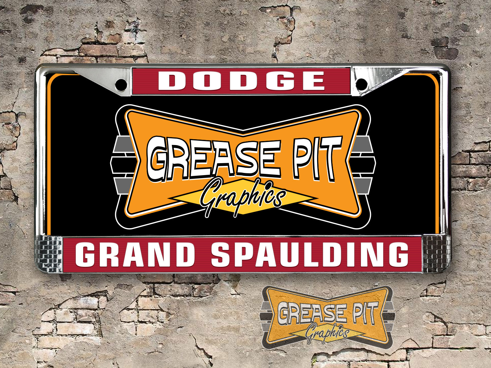 Hang one on your Dodge Charger, Challenger, Coronet, Super Bee, R/T, Polara, Dart, Demon, Aspen, Magnum, Monaco or on the wall in your garage, basement or man cave. A Grease Pit Graphics reproduction dealership license plate frame makes a great gift for the Hot Rodder & Muscle Car guy or gal in your life.