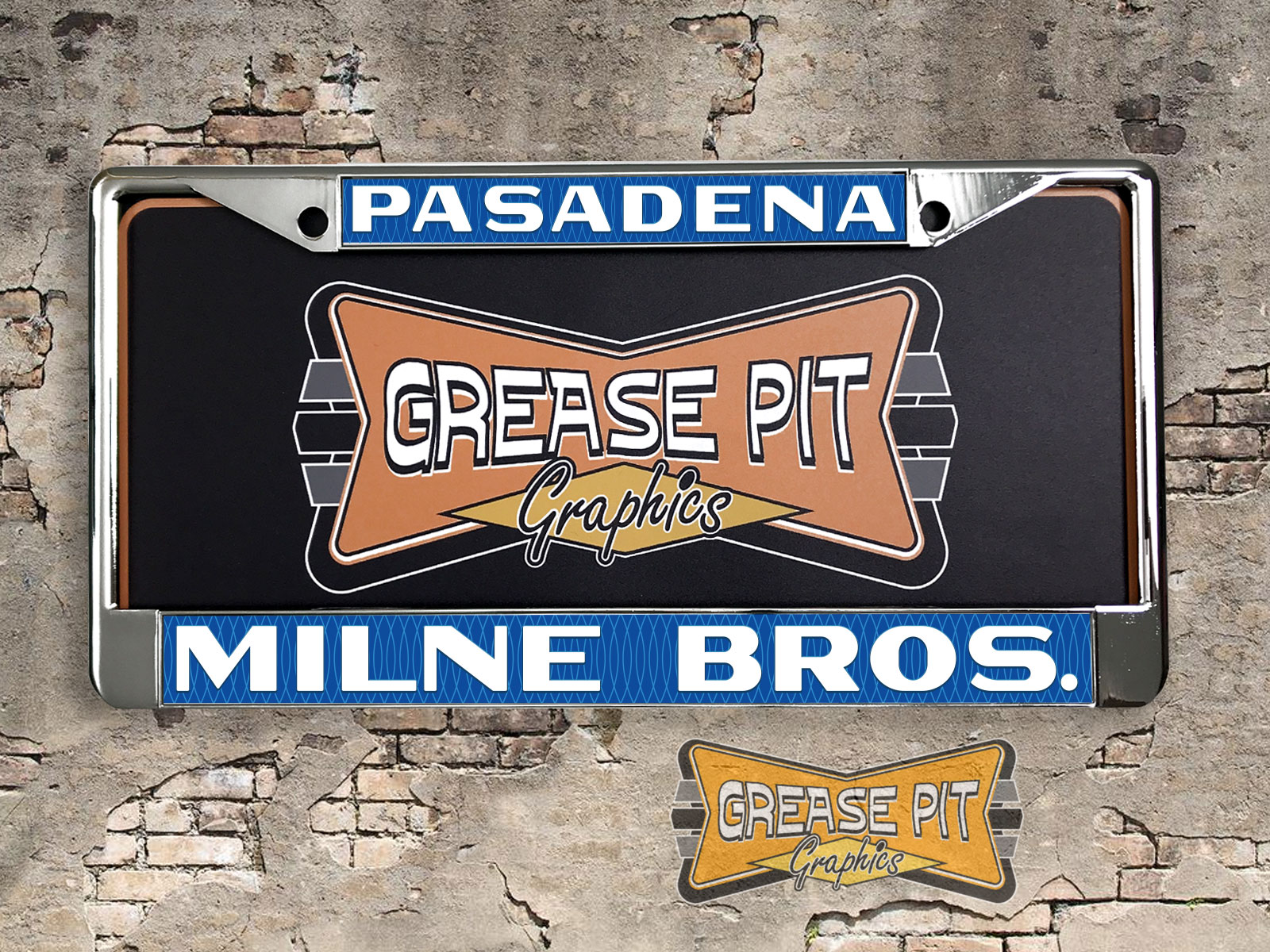 A newly produced vintage style Milne Bros Jeep reproduction dealership license plate frame for your Hot Rod, Vintage Classic car, or Muscle car.